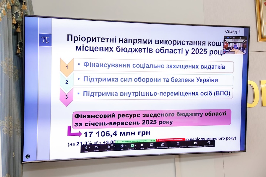 «Станом на 1 жовтня 2025 року за рахунок коштів з перевиконання дохідної частини розподілено 889 млн грн. В тому числі на заходи пов’язані з обороноздатністю спрямовано 150,25 млн грн, або 16,7%», – повідомила директорка департаменту фінансів.