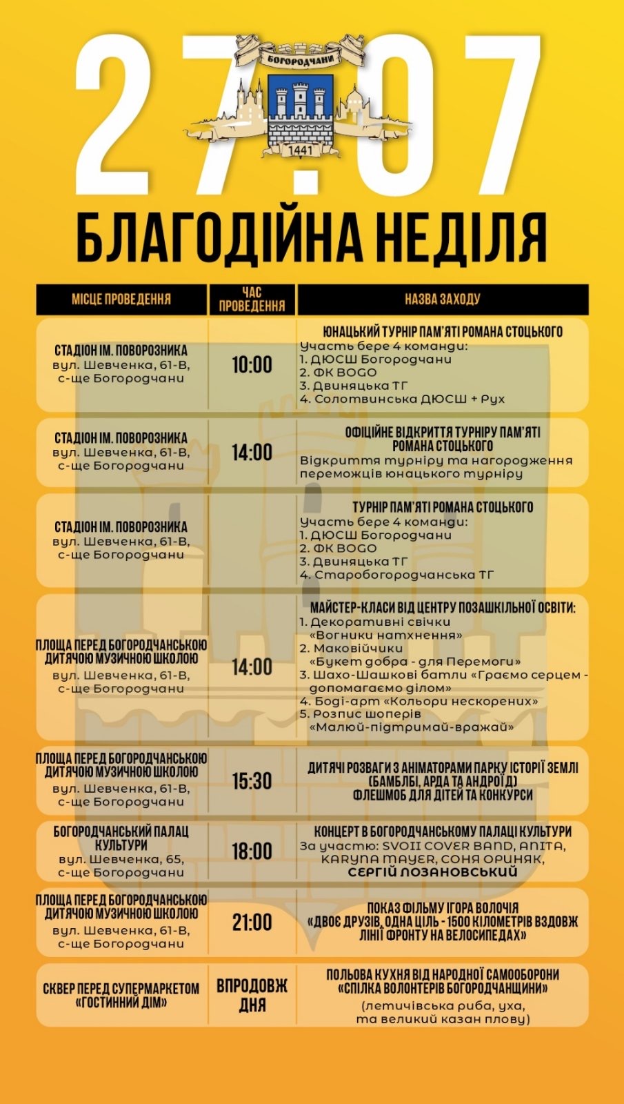 У неділю, 27 липня, у Богородчанах проведуть «Благодійну неділю», аби зібрати гроші для трьох підрозділів. Зокрема, для роти розвідки та першого стрілецького батальйону 10 гірсько-штурмової бригади «Едельвейс», а також для...