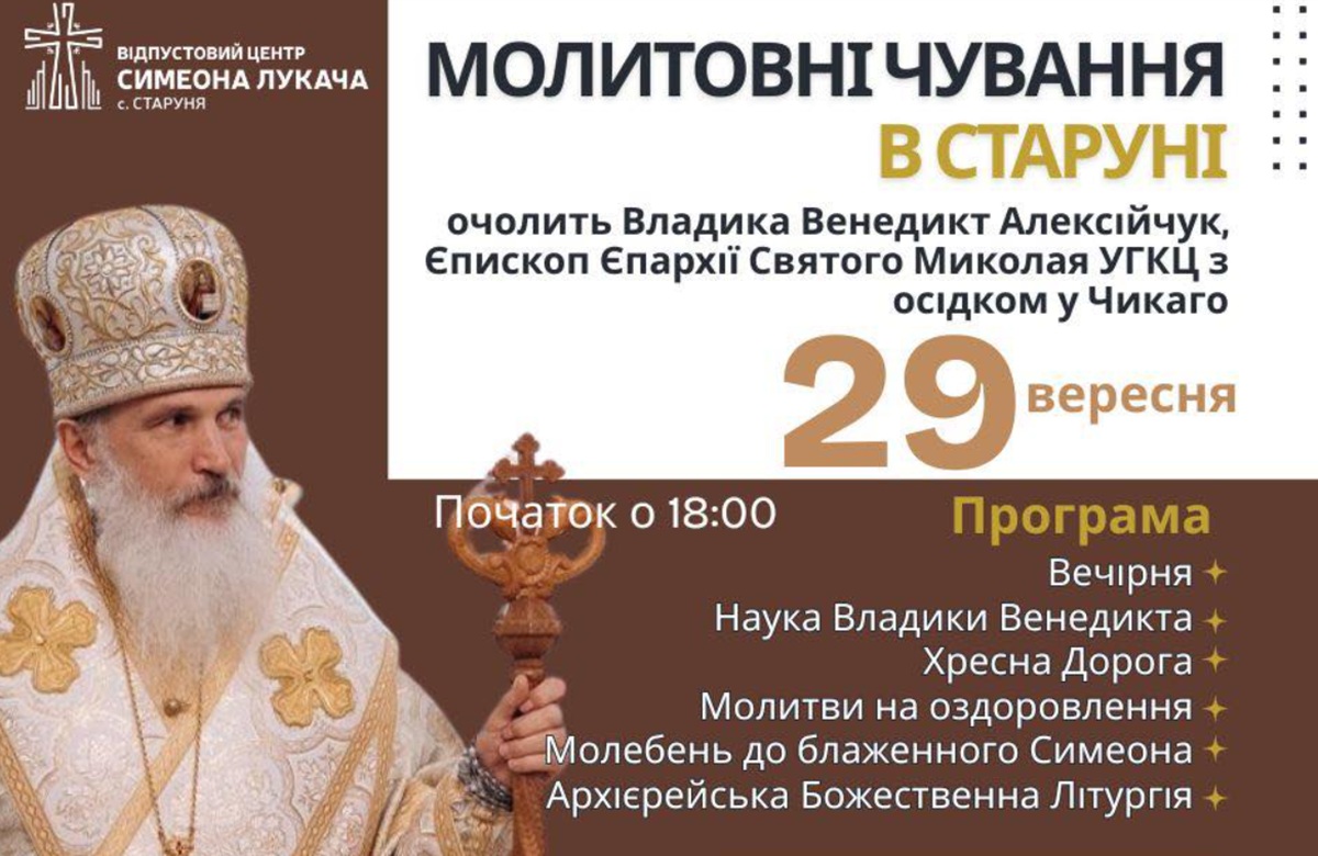 Єпископ УГКЦ Венедикт Алексійчук з діаспори проведе щомісячні нічні молитовні чування у Відпустовому центрі блаженного священномученика Симеона Лукача у Старуні 22 вересня. Про це повідомили на сайті Департаменту інформації Івано-Франківської Архієпархії УГКЦ....